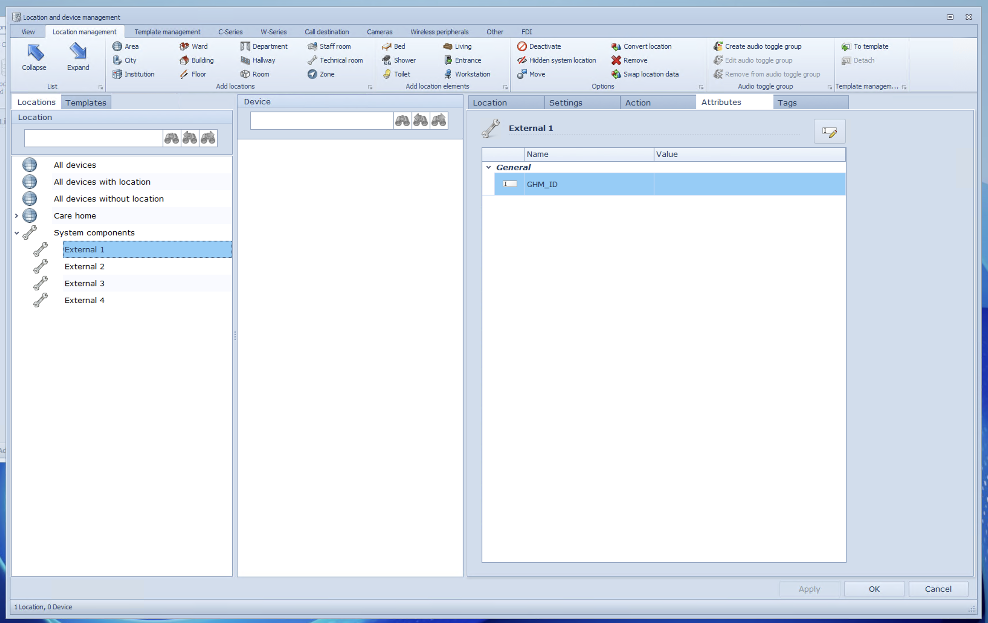 Select System Components, then head to Location Management and click Technical Room. This will create a new Technical Room that you can rename on the right: