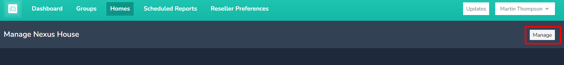 In the Homes tab, click on the Manage button at the top right of the page.
