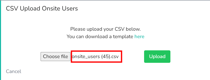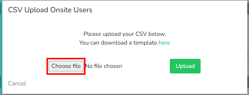- Click the “Choose file” button to select the CSV document saved on your PC.