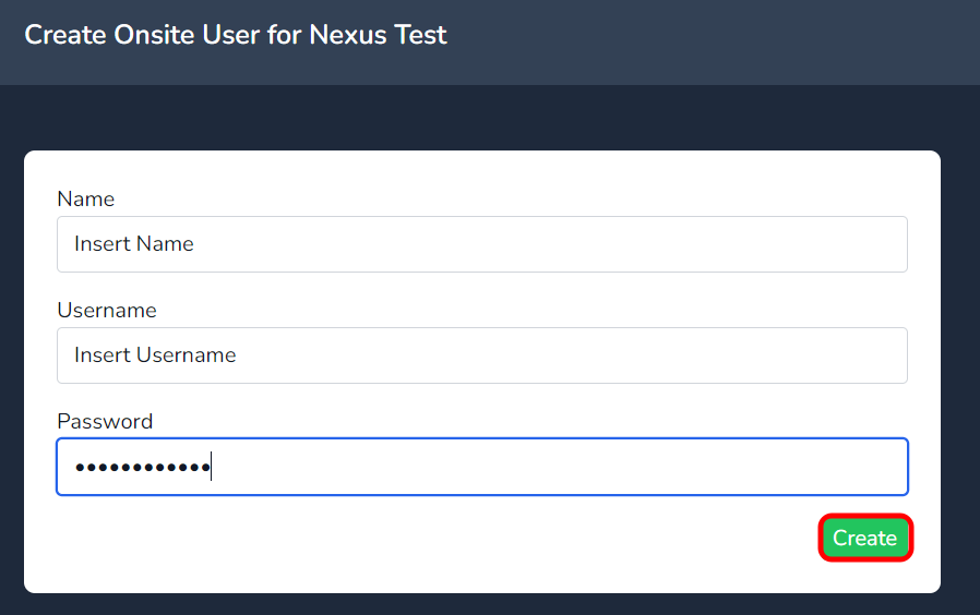 - To manually create a Onsite user, start by clicking the “Create” button under Onsite User tab.