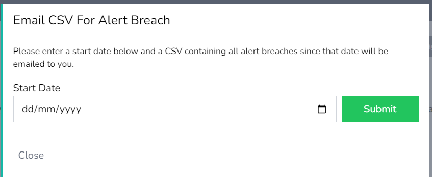 5. Email data for the threshold from any start date in time. Select the start date and press submit. An email with a link to download will follow.